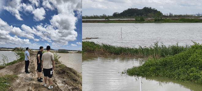 随后,专家团队走访了多位受灾养殖户。其中,青蟹养殖户遭遇尤为严峻,不仅养殖的青蟹因风暴大量死亡,加之池塘堤坝决堤导致存活的蟹类逃逸,损失惨上加霜。针对这一情况,特派员团队在安抚养殖户情绪的同时,精准指出了当前存在的管理短板和风险点,并围绕池塘修整、水质调控、苗种补充、科学投喂及后期健康管理等环节,给出了系统性的灾后复产方案和构建建议。