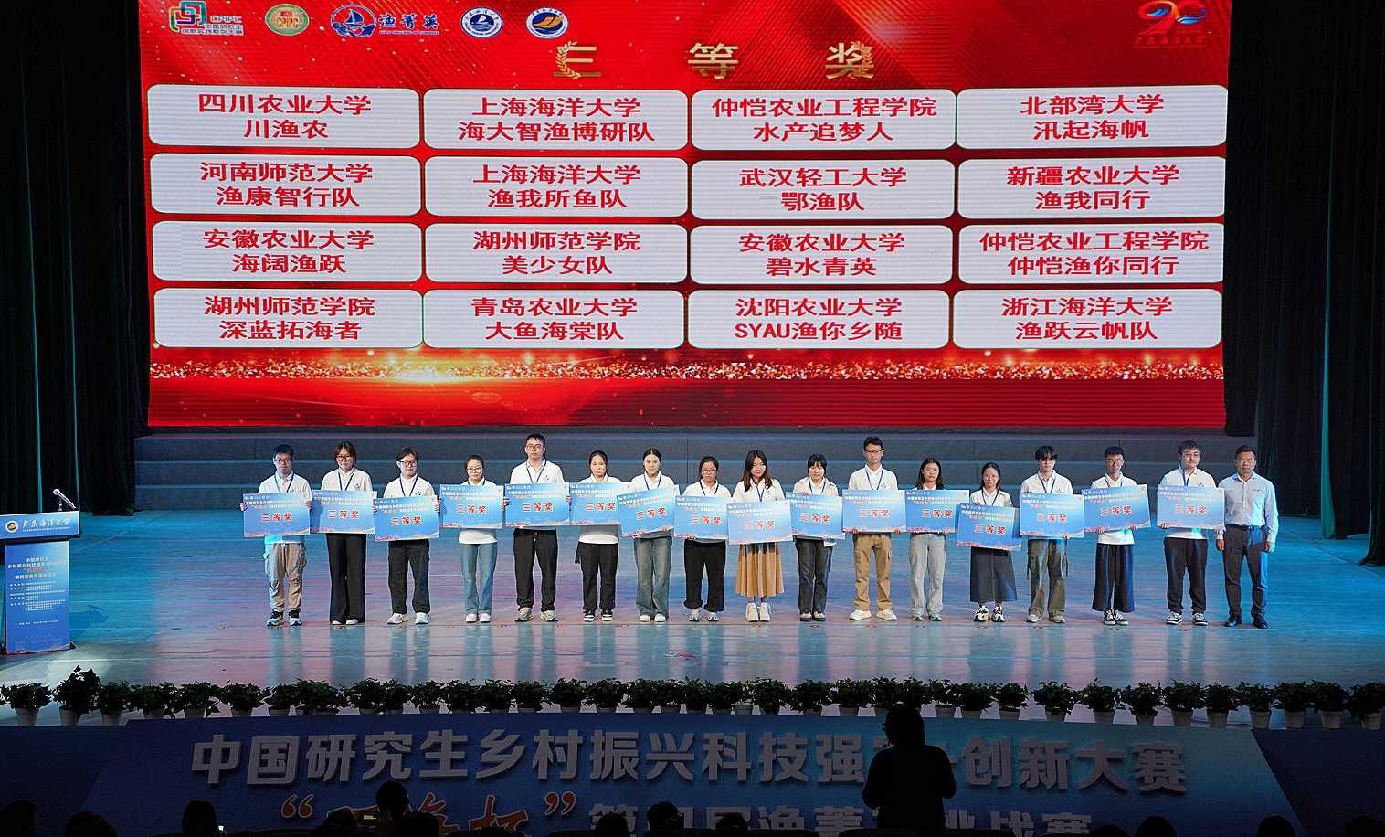 10月24至26日,中国研究生乡村振兴科技强农+创新大赛“旺海杯”第四届渔菁英挑战赛在广东海洋大学举办,来自全国41所高校93支队伍近500名师生参与了本次赛事。bevictor伟德的三支参赛队伍分别取得二等奖1项、三等奖2项的优秀成绩,是我校研究生在水产学科领域国家级技能竞赛中的历史性突破。