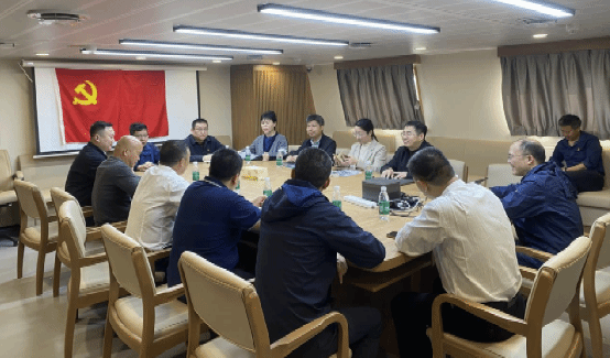 在“向阳红05”科考船船长张海峰的陪同下,沈洁和支部党员依次登上“向阳红05”“向阳红31”“向阳红14”等科考船进行实地参观。通过船舶运行大队党员生动细致的讲解,大家深入了解了各船舶的航行历程、科考装备功能以及在海洋资源调查、生态评估、气象观测等方面承担的重要使命。甲板上铮亮的仪器、舱室内精密的设备、墙面上鲜红的荣誉证书,无不诉说着这支队伍“向海图强、务实奉献”的奋斗故事。经了解,船舶运行大队党支部由原半军事化管理的海监与渔政执法人员组成,是一支政治坚定、纪律严明、作风顽强、敢打硬仗的先锋队伍。长期以来,该支部党员在海上维权执法、海洋综合调查、生态环境监测、应急抢险救援等重大任务中冲锋在前、屡建战功,展现了新时代海洋工作者的忠诚担当与过硬素质。党员同志们被他们“特别能吃苦、特别能战斗、特别能奉献”的航海精神深深打动,对一线海洋工作者长期的艰辛付出表示由衷敬佩。