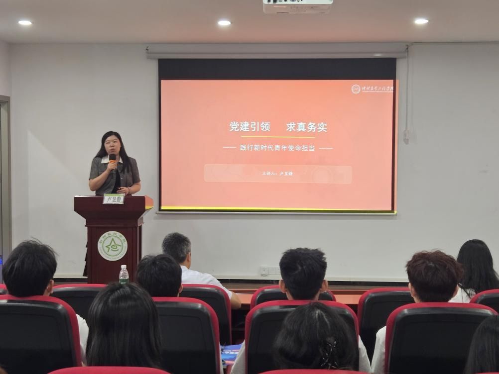 学校党委组织部组织科科长卢昱静老师,以《党建引领、真抓实干——践行新时代青年使命担当》为题,从“党建引领、青年使命、务实担当”三个维度,系统阐述了新时代高校基层党组织和青年党员树立和践行正确政绩观的重要性,以及在维护国家安全、践行社会主义核心价值观中的责任与担当。在工作层面,她紧扣“强基工程”行动计划收官阶段的各项要求,强调基层党组织应通过规范化、制度化建设,实现从“有形覆盖”到“有效覆盖”的转变,力戒形式主义,切实夯实组织基础。在生活层面,她着重强调了规矩意识与法治观念的重要性,指出员工党员应在日常学习生活中带头遵纪守法,增强明辨是非、抵御风险的能力,做到“明规守纪、护航成长”。在思想层面,她鼓励师生党员弘扬“求真务实、担当作为”的精神风貌,坚持理论联系实际,在科研学习、社会服务中践行初心使命,自觉将个人发展融入国家发展大局。